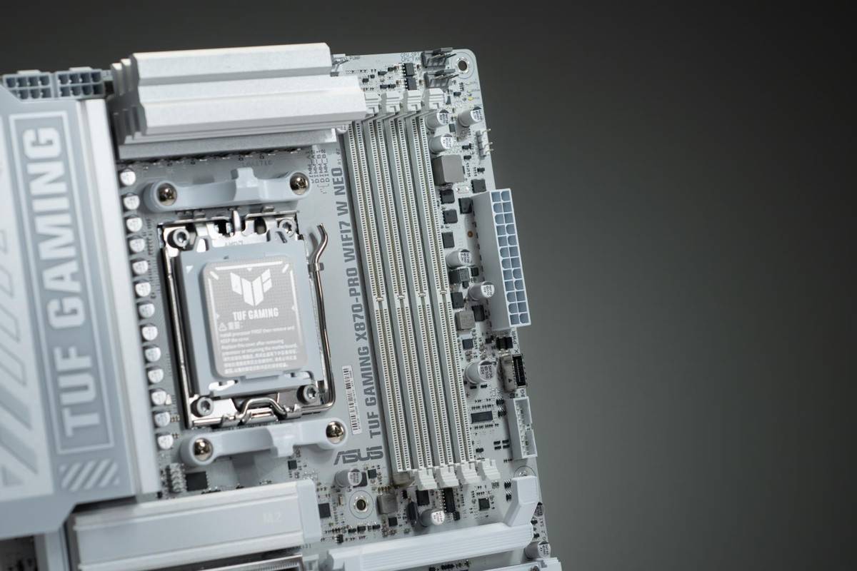 TUF GAMING X870-PRO针对高频DDR5内存进行了优化设想,从板还供给了CMOS清零按钮、BIOS FlashBack一键升级按钮、Q-LED Core 毛病诊断灯。并配备了华硕SafeSlot高强度平安插槽手艺,TUF GAMING X870-PRO具有丰硕而强大的超频功能。再到USB接针底座和处置器旁的电容都是同一的灰白配色,因为TUF GAMING X870-PRO内置了异步时钟发生器,易用性方面,